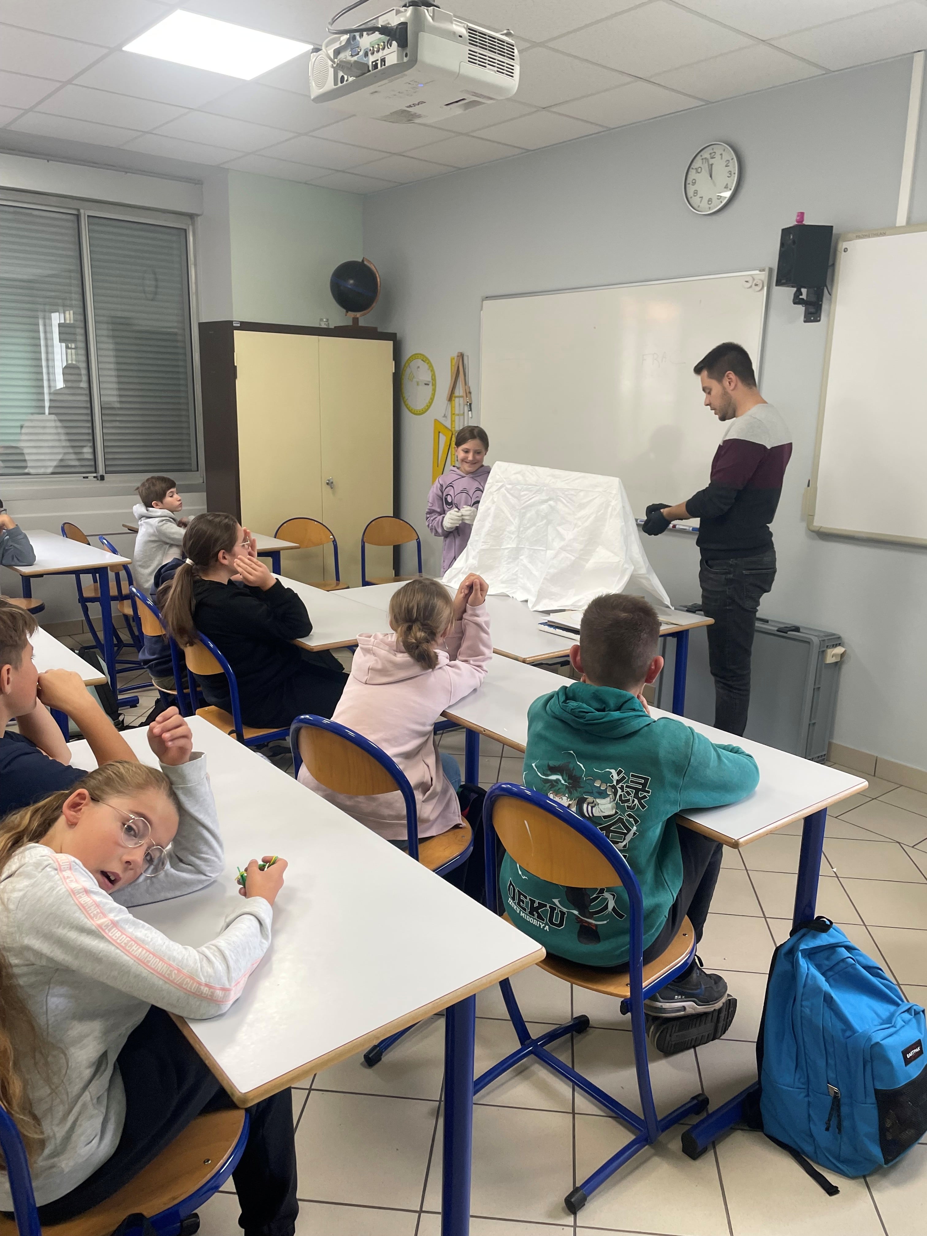 La venue du dispositif «Une heure une œuvre» au collège proposé par le FRAC Auvergne a permis aux élèves de 4ème, 5ème et 6ème de découvrir une œuvre d’art contemporain choisie parmi les collections.