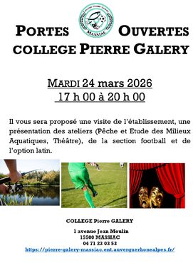 Les portes ouvertes du collège auront lieu le mardi 24 mars 2026 de 17h à 20h.